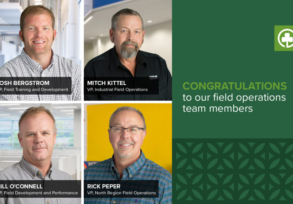 Please join us in congratulating Rick Peper, Mitch Kittel, Bill O’Connell and Josh Bergstrom for their recent promotions to vice president. These four field operations team members have been with Ryan for more than 100 years combined. They all play different roles out in the field but are instrumental in ensuring Ryan’s projects go smoothly. Their hard work and dedication are valued here at Ryan. Cheers and congratulations!